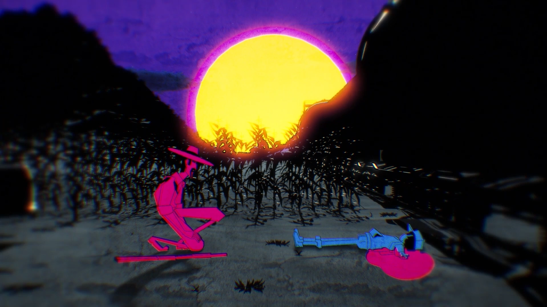 We used a black-and-white texturing approach with a purple atmosphere to enhance the film's mysterious tone, adding a unique visual flair to the backgrounds.